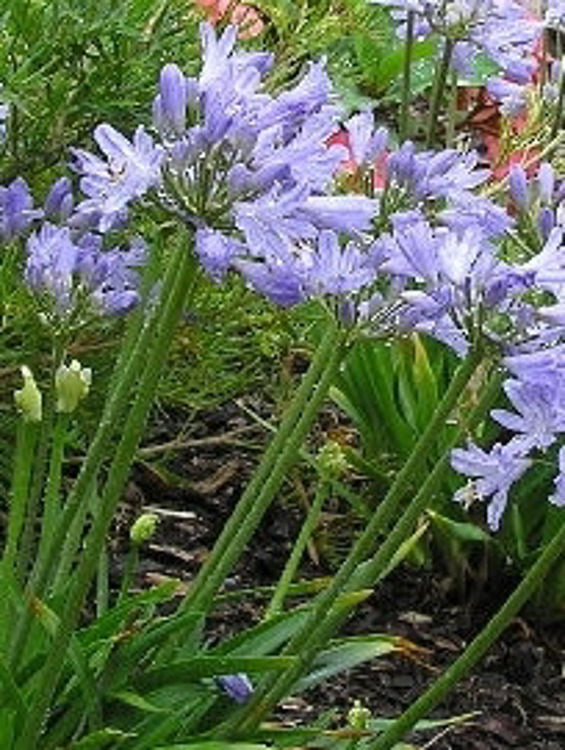 Long flowering, clumping dwarf Agapanthus with abundant blue flowers on upright stems throughout Summer. Shows strong resistance to heat, humidity, and frost. Mass plant for impact. Best flowering in full sun. Great for edging paths and driveways.Evergreen plant.