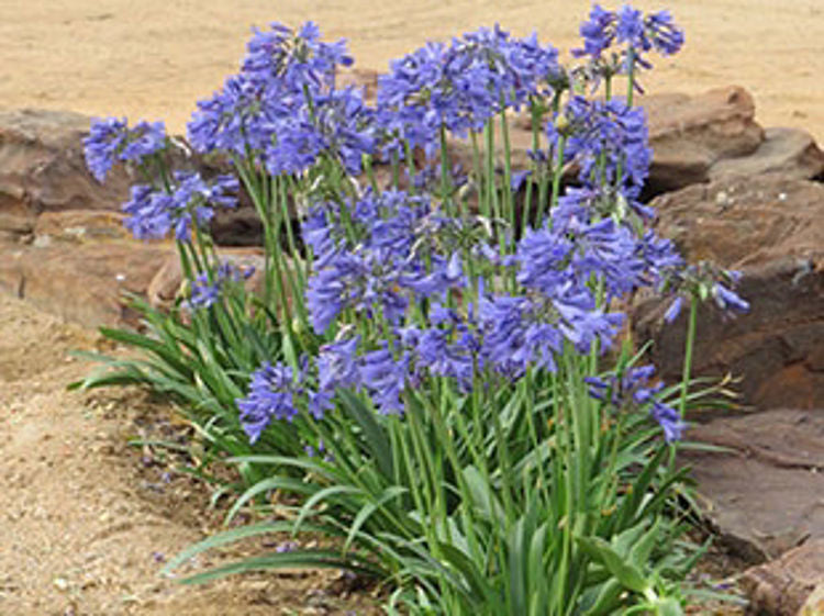 Bingo Blue™ Agapanthus produces bright blue flowers for a longer period. Flowers can be seen en masse from October to November, and sporadically throughout the year. This compact form has good disease resistance and is tough, drought and frost tolerant. Grows approx. 40cm high x 60cm wide; 60-80cm high flowers. Uses: Garden beds, borders, patio pots, planter boxes. ANDbin PBR.