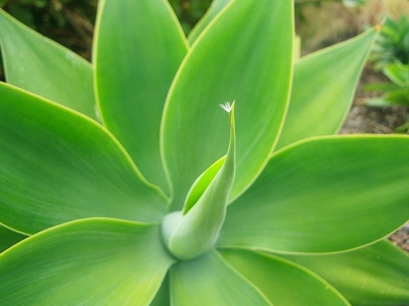 A popular thick fleshy leaved, rosette forming succulent. Can take up to 10 years to shoot an amazing terminal flower spike. The main plant dies, but forms many new 'pups'. Works equally well in a feature pot as a statement or mass planted in a tropical landscape.