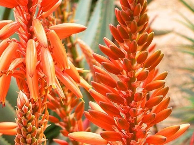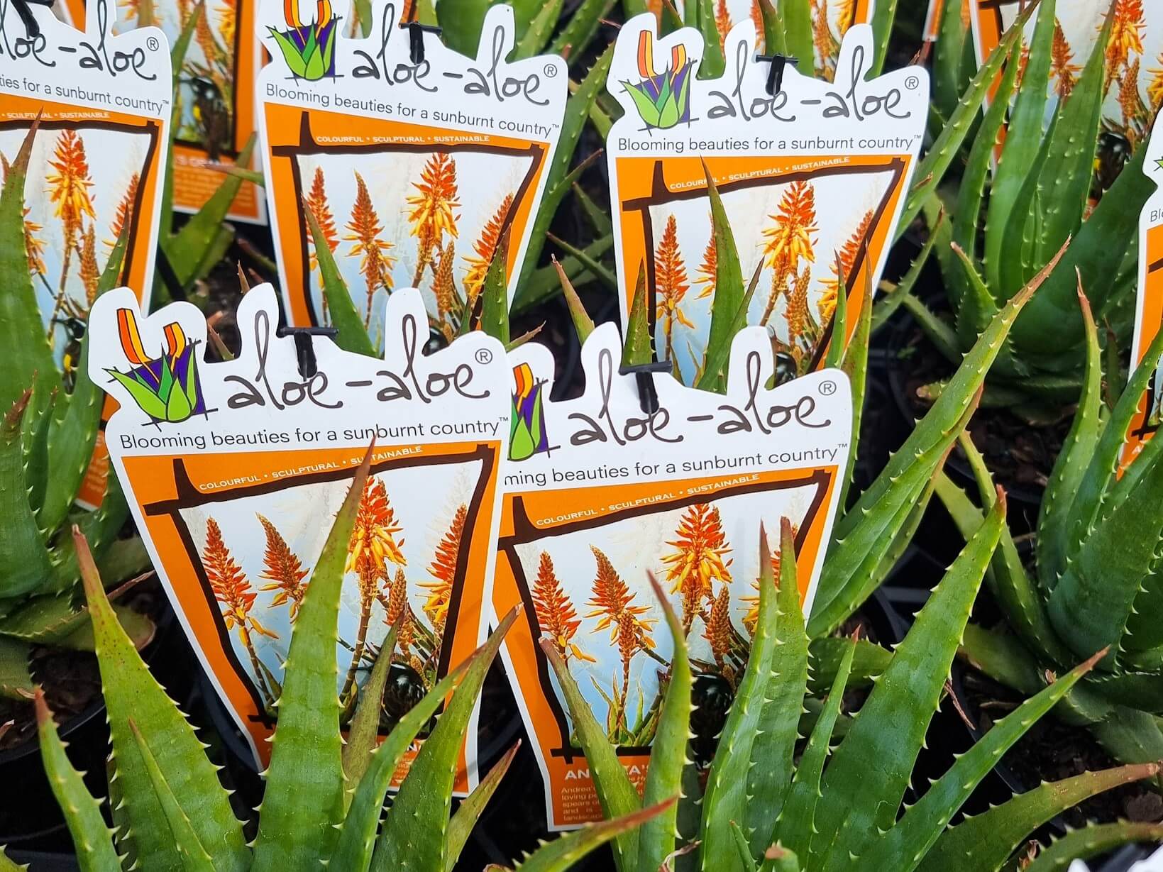 A special long flowering hybrid aloe that, at a young age throws up spears of shiny orange tubular flowers from early to mid winter and is a tough perennial for harsh landscaping conditions. Grows approx 30cm tall x 30cm wide.