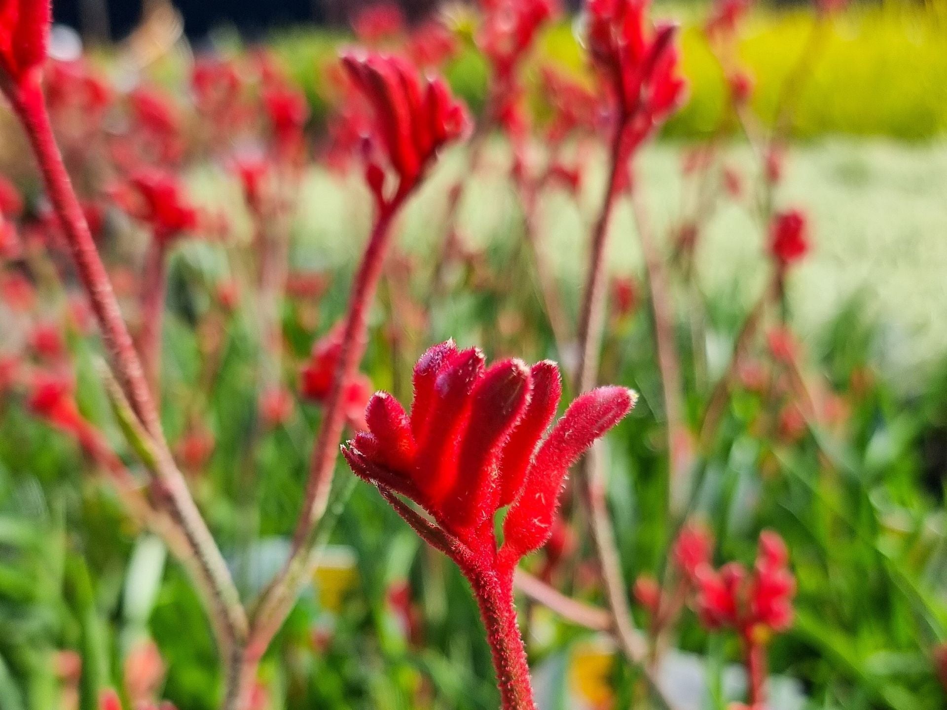 Bush Gem Kangaroo Paws have a proven record for consistent quality and performance. Used extensively in commercial landscapes and home gardens alike. Use in-ground or in large pots. They look great planted in multiples. Use as a cut-flower, will have a 2 week vase life. Lots of bright red flowers contrast nicely against the plant's mid green foliage. Plant these in multiples for a dramatic display. Great patio plant. Grows approx 60cm x 60cm