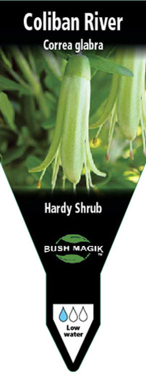 This selected form of Correa glabra was found near the Coliban River, Kyneton in Victoria. This shrub is naturally smaller and denser in habit than other Correa glabra species and has pale green, lantern shaped flowers in late autumn to winter. Grows best in full sun to part shade in most well drained soils. Coliban River will withstand periods of dry once established. Coliban River makes an excellent low growing hedge for difficult conditions and the compact nature of this plant makes it very useful for smaller gardens.