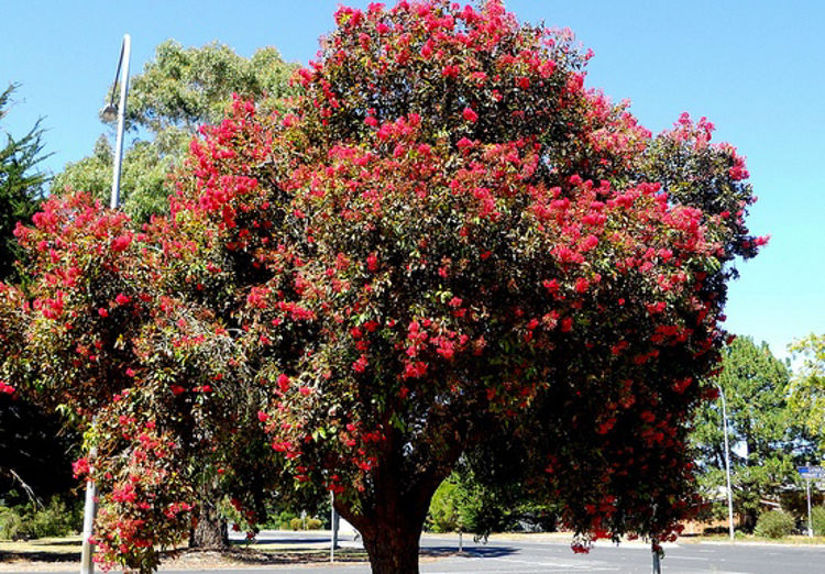 Medium attractive evergreen native tree. Stunning display of red-orange flowers in summer. Foliage is mid green with a light lemon scent, light grey bark. Great as a feature tree for a display of colour. smaller options also available in grafted varieties.