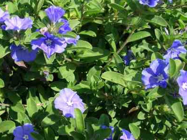 Fast growing perennial with silvery-green foliage and a prostrate habit. Blue funnel shaped flowers appear in Summer through to Autumn. Tough plant tolerating coastal conditions and salt spray. Useful in borders, containers and as a groundcover.
