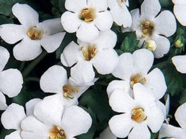 Small spreading annual with long weeping stems that are covered in small fragrant white flowers throughout autumn, spring and summer. Foliage is petite and dark green in colour. The Abunda Series has more of an upright habit and larger flowers than standard bacopa / sutera varieties. A great choice for hanging baskets. Grows approx 30cm tall x 30cm wide.