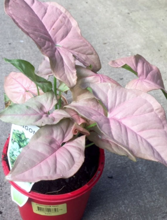 Attractive foliage plant grown for its lovely pink foliage. Leaves are shaped like arrow-heads, hence the common name. A popular and easy-to-grow vine used as an indoor plant, to create a tropical feel or cascading from a hanging basket.